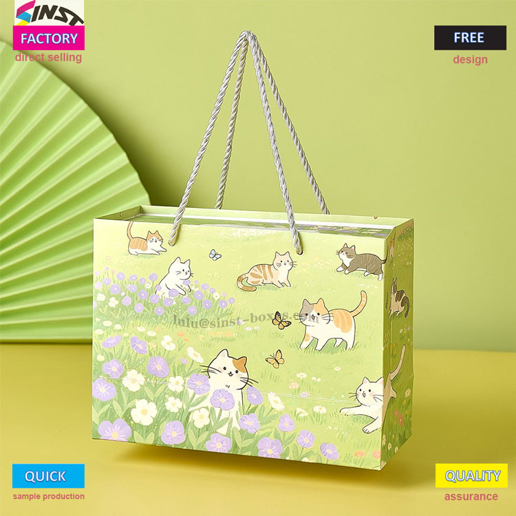 Material plišaste darilne škatle z obeskom Cute Cat je v celoti okolju prijazen karton, ki ga lahko po uporabi neposredno vržete v smetnjak za recikliranje. Čezmorskim strankam je všeč tudi ta zeleni dizajn. Poleg tega je mogoče po potrebi prilagoditi velikosti in vzorce, na primer natisniti logotipe blagovnih znamk ali praznične čestitke, ki jih lahko obesite na torbe ali avtomobile, da pokažete svojo stopnjo prefinjenosti.