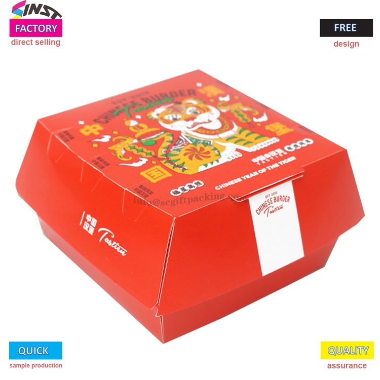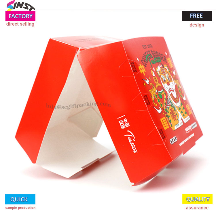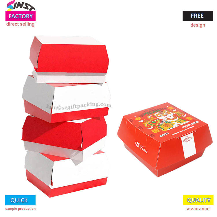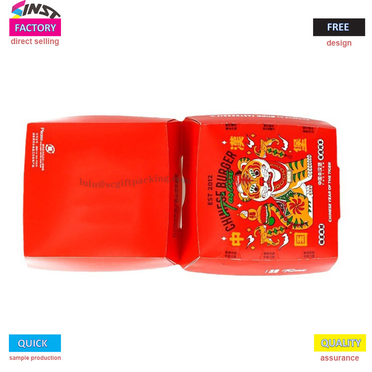 Papirna škatla s papirjem s hrano Hamburger Takeaway je narejena iz belega kartona hrane, ki je lahko neposredno v stiku z videoposnetki. Je odporen na olje in vodo, brez vonja in ima zloženo in zaprto dno, ki je neprepustno; Lahko se uporablja kot škatla za embalažo za pekovske izdelke, hamburgerje, kokice, škatle za torte in druge splošne škatle za embalažo za hrano; Naš okolju prijazen Burger Flip je zasnovan posebej za zasedene verige hitre prehrane, gostinske storitve in podjetja za pripravo obrokov. Narejena je iz 100 -odstotnega recikliranega papirja PE, ki združuje trajnost s trajnostjo in ima naslednje značilnosti: