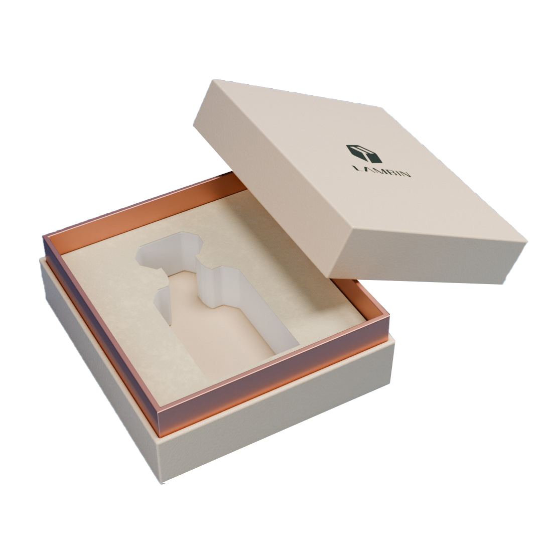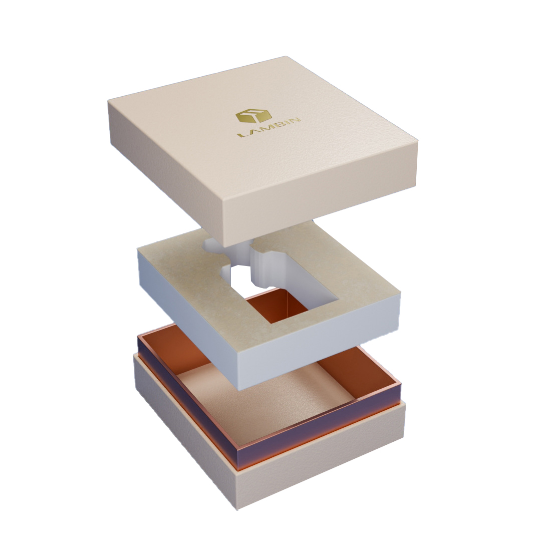 Iz eksplodiranega pogleda je oblikovna logika te darilne škatle zelo jasna: gre za darilno škatlo, ki jo izdelate z gnetenjem in sestavljanjem zgornjega pokrova in notranje obloge ter spodnji pokrov in notranje obloge skupaj. Zgornji sloj je bež škatlo z logotipom zlate blagovne znamke, ki je na površini, ki zagotavlja občutljiv in brez praske; Srednja plast je ključna - oblika votle obloge se popolnoma prilega z dnom skupne steklenice parfumov, kot je "majhen pladenj", prilagojen za steklenico. Tudi če je škatla postavljena v kovček, se steklenica parfuma ne bo valjala in trčila v škatlo; Videz sprejme slog uokvirjene darilne škatle, s posebnim papirjem, vtisnjenim na površino in na okvirju posebnega kartona Rose Gold. Obloga je narejena iz bele eva flanelne tkanine. Od razpakiranja do prikazovanja vsak kot izžareva razkošno teksturo.