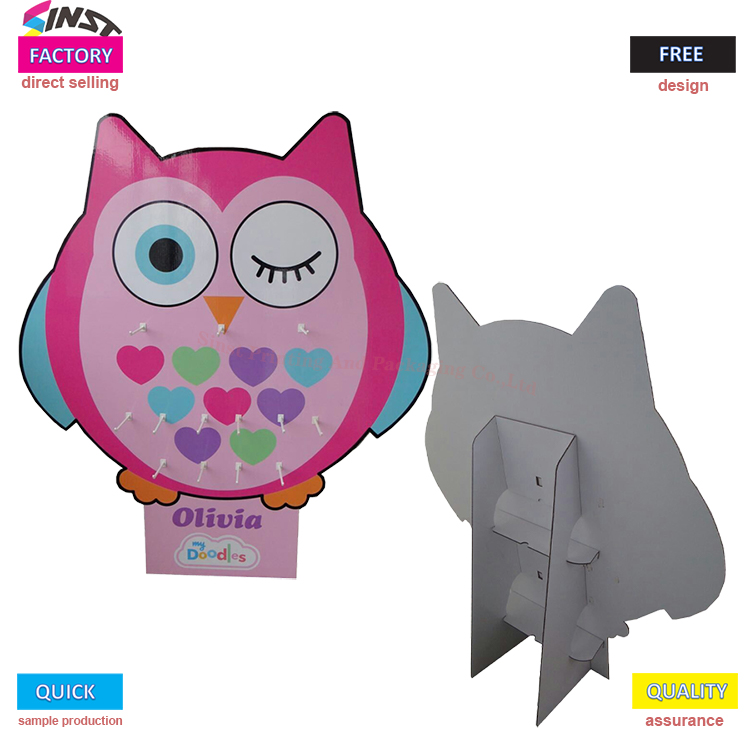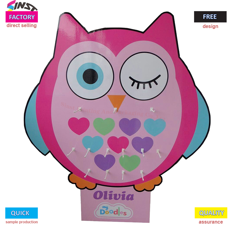 2. Material izdelka: Owl Peg kartonsko stojalo za razstavno stojalo torba za igrače obesek za ključe pisalne potrebščine s kavlji. Obstaja veliko vrst materialov in stilov. Lahko je barvno potiskana ali naravna. Slog je mogoče prilagoditi glede na zahteve kupcev, strankam pa lahko zagotovimo tudi oblikovanje, proizvodnjo, predelavo celovitih embalažnih rešitev. SINST ima različne stojala za papir, stojala za papir, kartone, kartone in opremo za proizvodnjo in proizvodnjo papirnih izdelkov ter lahko proizvaja različne papirne izdelke visokega, srednjega in nizkega cenovnega razreda. Izdelki so modni in raznoliki, kakovost pa ustreza ustreznim industrijskim standardom.
