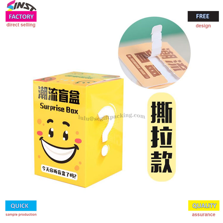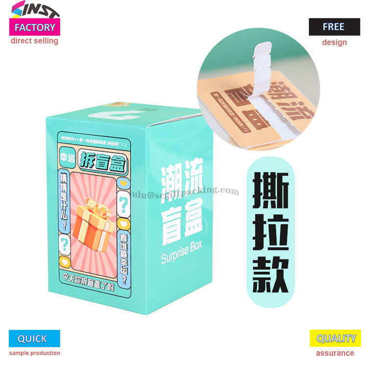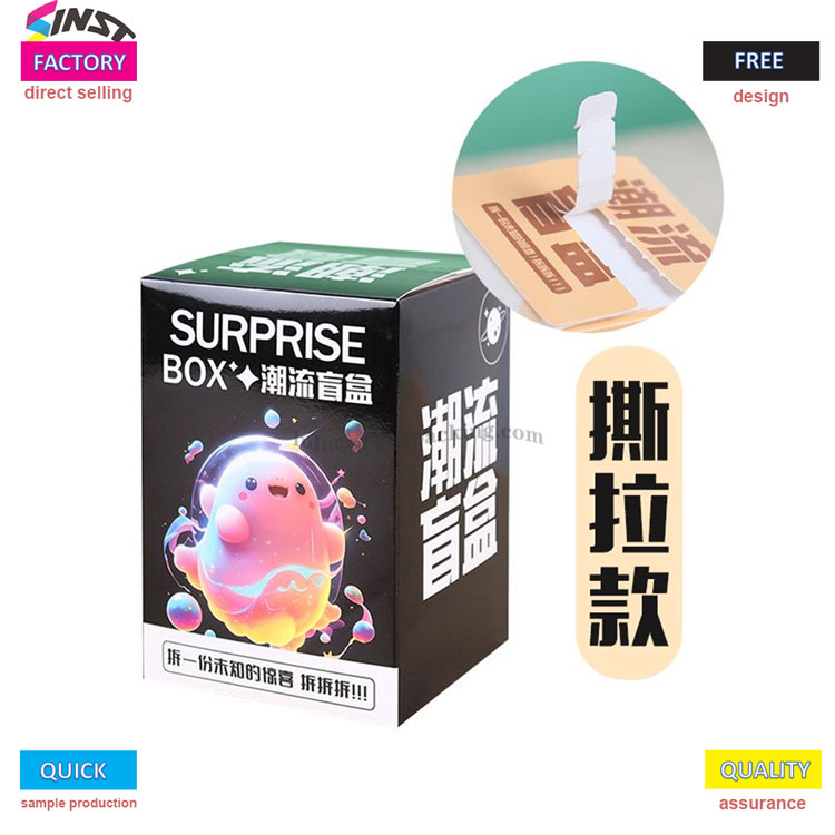 To je trendovska lutka s slepo škatlo za odtrganje kartic z Instagram slogom in visoko estetsko vrednostjo. Oblikovanje raztrganja ustvarja navdušen in skrivnosten občutek za stranke, ki kupujejo ta izdelek, zaradi česar je darilo še bolj očarljivo! Ta slepa škatla je narejena iz zgoščenega materiala iz belega kart, ki poudarja njegovo oceno;